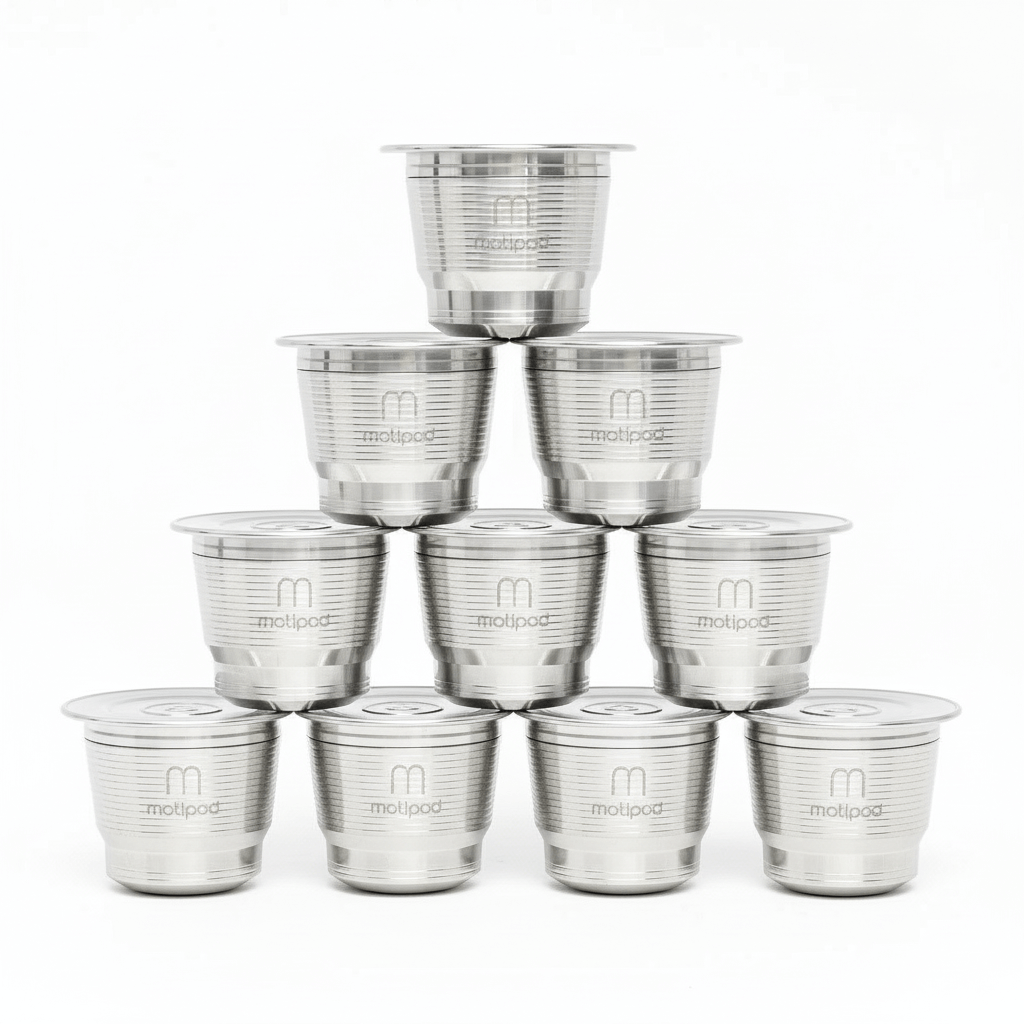 Unlike disposable pods, Motipod uses pre-drilled holes in the bottom (for water IN) and a precision center hole in the lid (for coffee OUT). This means your machine's piercing spikes never engage - keeping your Nespresso safe while delivering optimal extraction.